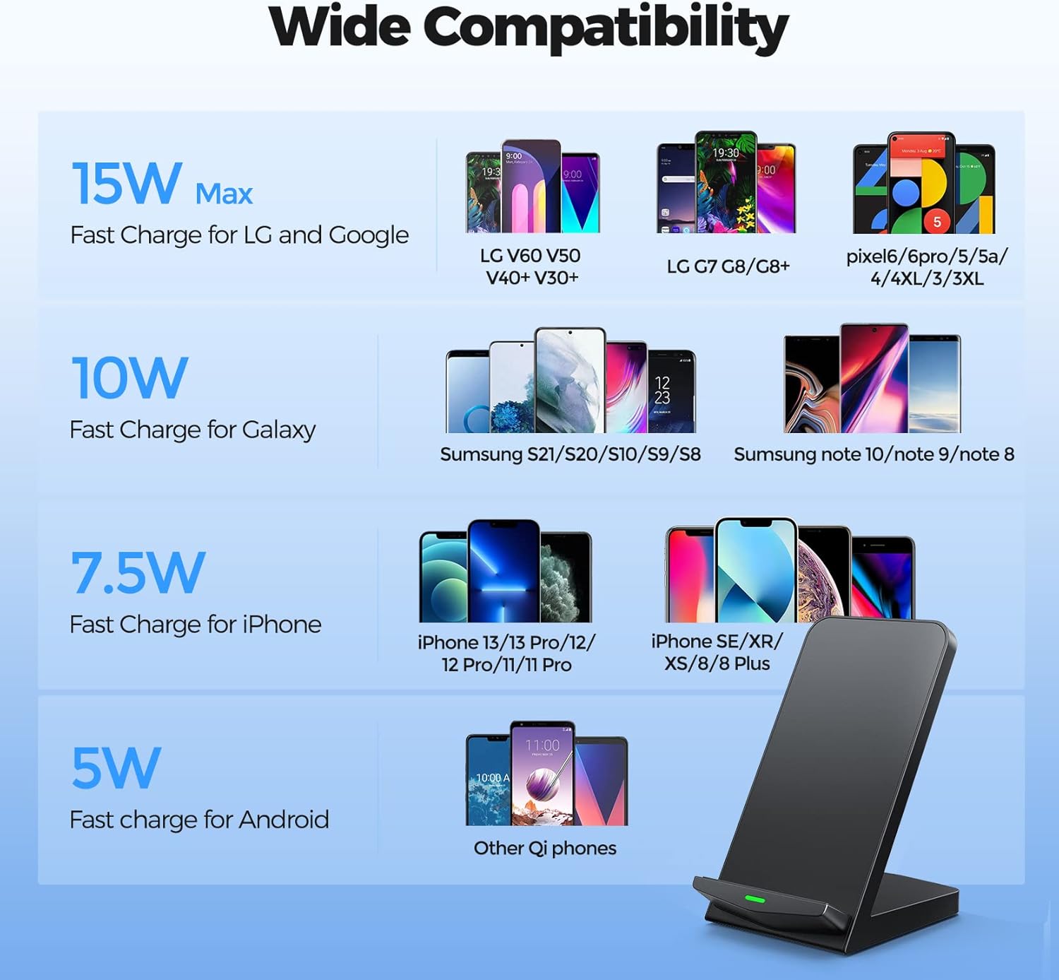 Compatible with a wide range of devices, this wireless charger is a versatile and practical accessory for all your charging needs. Whether you’re an iPhone user, a Galaxy enthusiast, or a Google fan, this charger has got you covered.